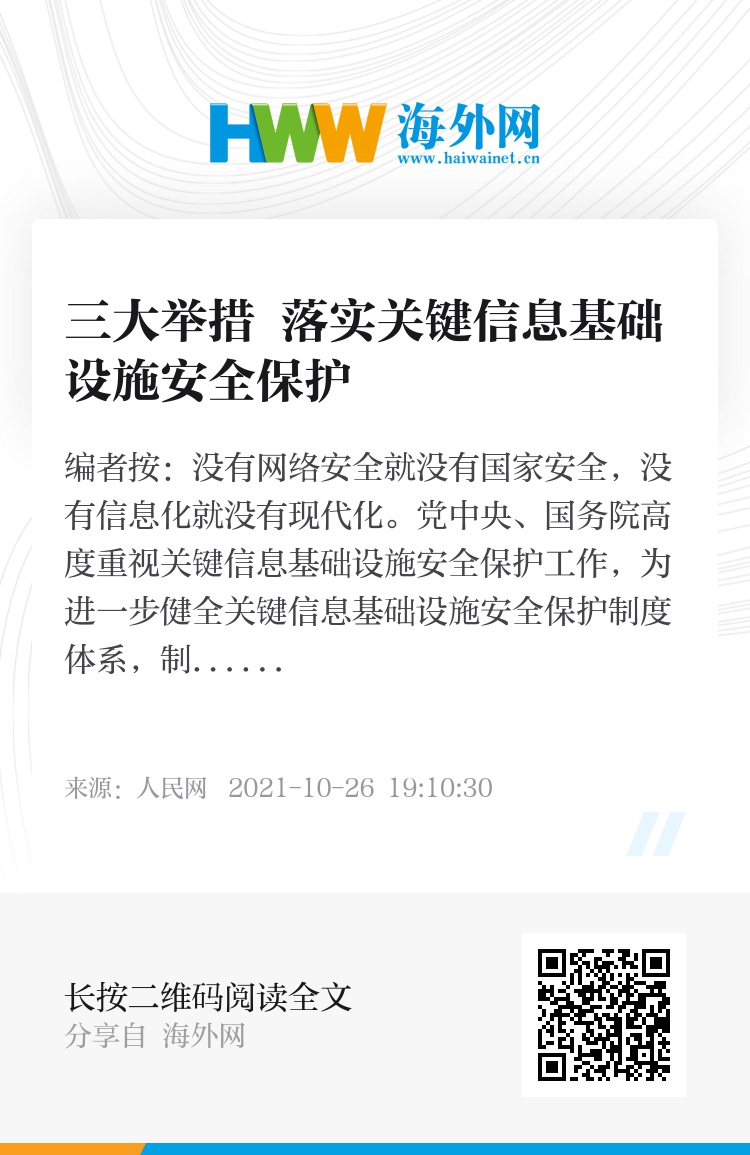 三是加强关键信息基础设施安全保障。争取有关部门加大经费、机构、编制、科研、工程、人员、人才培养力度,支持网络安全产业和企业发展。