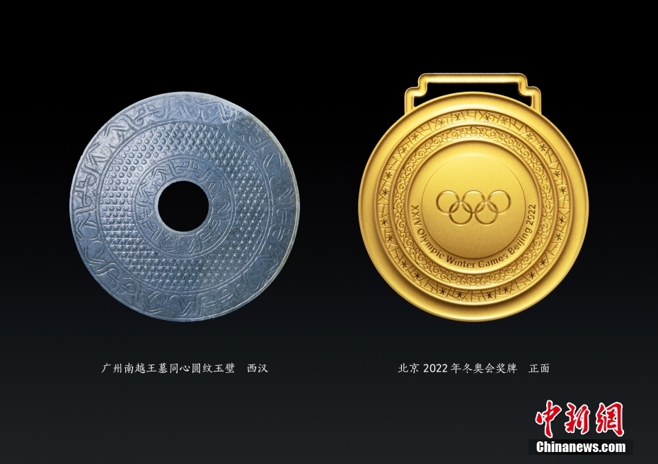 图为北京2022年冬奥会奖牌(右)。 北京冬奥组委供图
