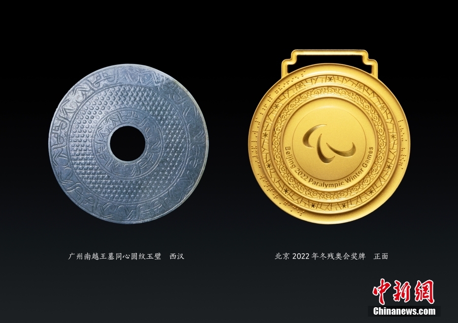 图为北京2022年冬残奥会奖牌(右)。 北京冬奥组委供图