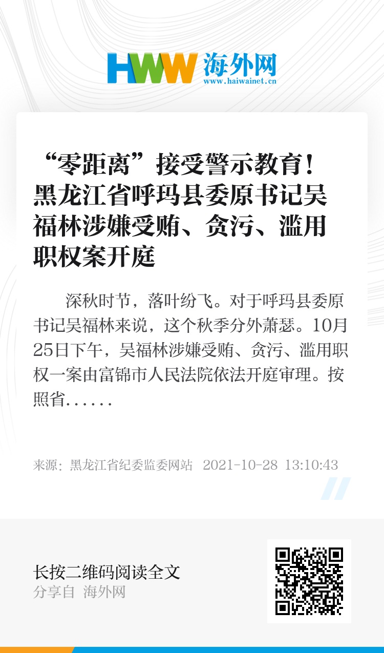 深秋时节,落叶纷飞。对于呼玛县委原书记吴福林来说,这个秋季分外萧瑟。10月25日下午,吴福林涉嫌受贿、贪污、滥用职权一案由富锦市人民法院依法开庭审理。按照省纪委监委要求,佳木斯市纪委监委组织部分县区、市直单位主要负责同志和重点岗位领导干部40余人到庭旁听庭审,“零距离”接受警示教育。
