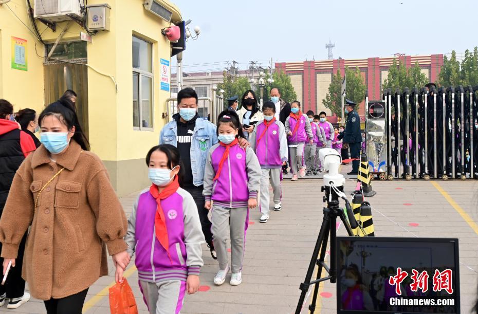 10月29日,河北省献县实验小学,学生在家长的陪同下依次排队入校,有序进行新冠病毒疫苗接种。据河北省卫生健康委员会28日消息,为进一步提高新冠病毒疫苗接种覆盖率,尽快构筑群体免疫屏障,在持续做好12岁以上人群接种工作的基础上,该省各地陆续启动3至11岁人群新冠病毒疫苗接种工作。 中新社记者 翟羽佳 摄