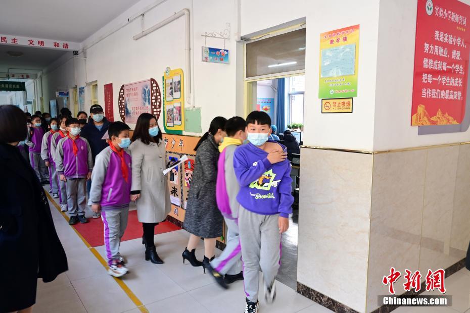 10月29日,河北省献县实验小学,学生在家长的陪同下依次排队入校,有序进行新冠病毒疫苗接种。据河北省卫生健康委员会28日消息,为进一步提高新冠病毒疫苗接种覆盖率,尽快构筑群体免疫屏障,在持续做好12岁以上人群接种工作的基础上,该省各地陆续启动3至11岁人群新冠病毒疫苗接种工作。 中新社记者 翟羽佳 摄