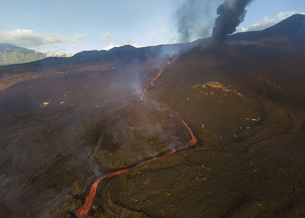 当地时间2021年10月28日,西班牙拉帕尔马,加那利岛火山继续喷发,熔岩摧毁了当地的房屋,大量岩浆、气体和火山灰持续喷发。此前两天,当地发生强烈的地震活动,火山自喷发以来已有5个星期。图源:视觉中国