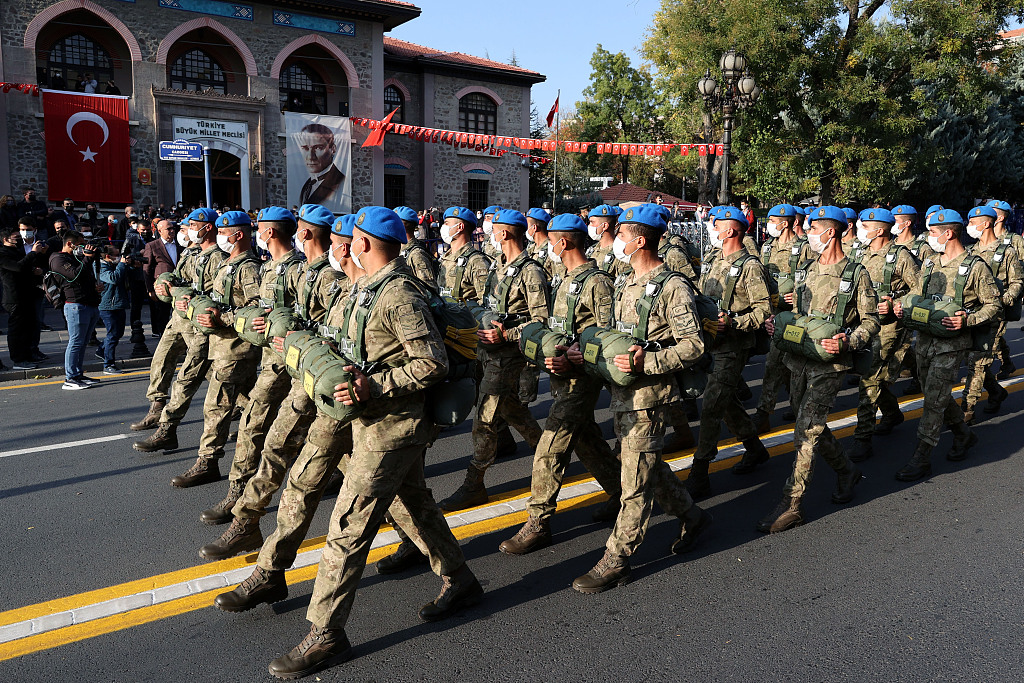 当地时间10月29日,土耳其庆祝共和国成立98周年纪念日,各地举行庆祝活动。图片来源:人民视觉