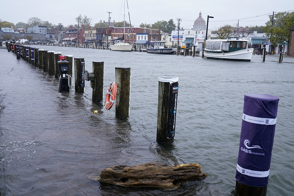 当地时间10月29日,美国马里兰州,由于暴雨,当地街道被洪水淹没。图片来源:视觉中国