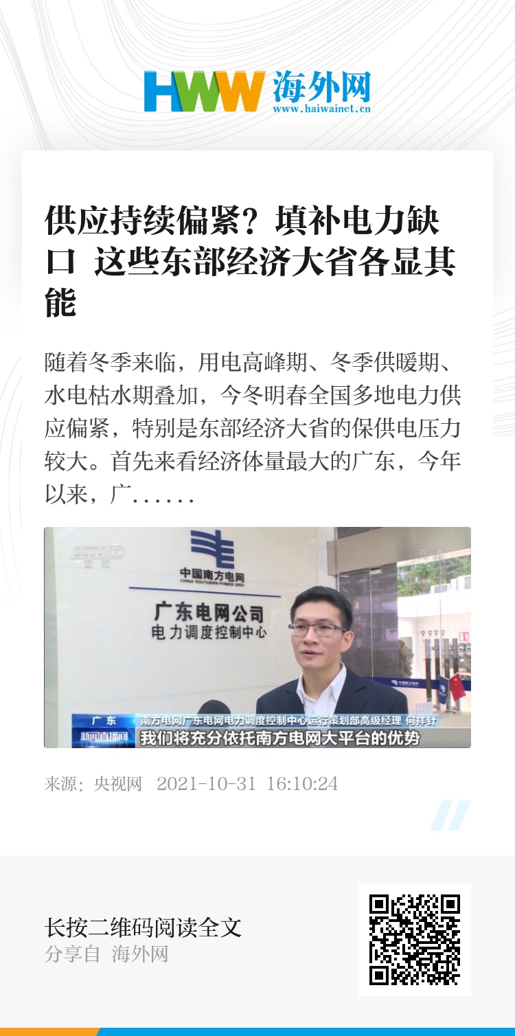 随着冬季来临,用电高峰期、冬季供暖期、水电枯水期叠加,今冬明春全国多地电力供应偏紧,特别是东部经济大省的保供电压力较大。