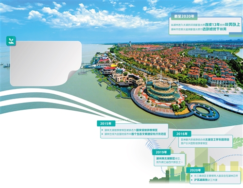 2015年,湖州太湖旅游度假区被命名为国家级旅游度假区。湖州也成为全国地级市中首个生态文明建设先行示范区。2016年,亚洲最大的旅游综合体太湖龙之梦乐园项目落户长兴图影旅游度假区。2019年,湖州南太湖新区成立,成为浙江省四大新区之一。2020年,长三角地区主要领导人座谈会在湖州召开,沪苏湖高铁动工兴建。