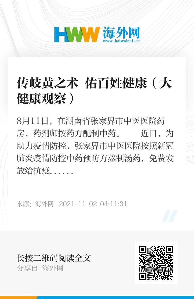新冠肺炎疫情发生以来,中医药全程深度参与疫情防控救治,为守护人民群众生命健康做出重要贡献,这也是中医药传承精华、守正创新的生动实践。