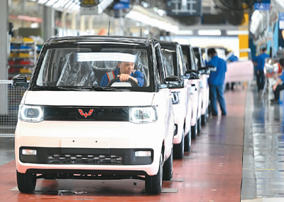 广西柳州一家汽车企业的工人正在新能源汽车生产线上忙碌。 新华社发 黎寒池摄