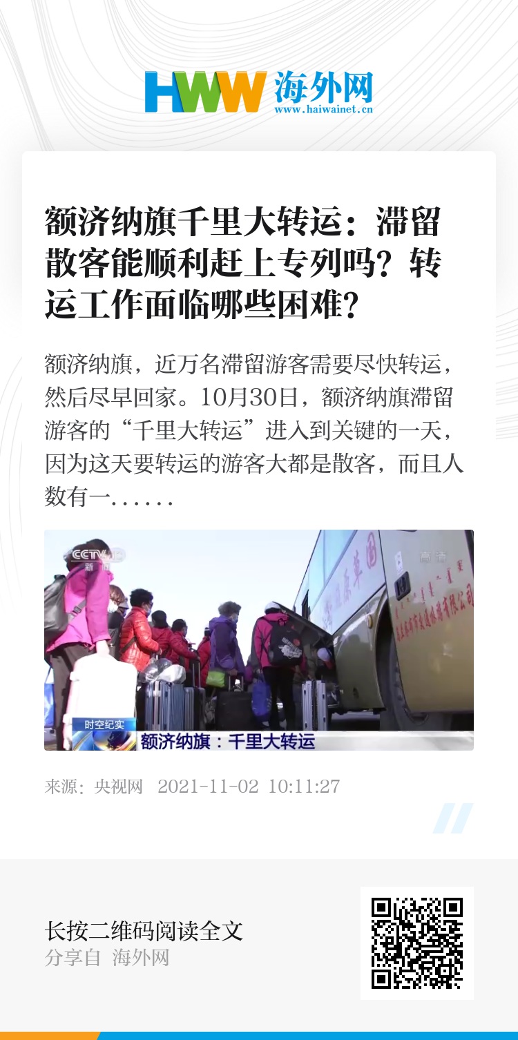 额济纳旗,近万名滞留游客需要尽快转运,然后尽早回家。10月30日,额济纳旗滞留游客的“千里大转运”进入到关键的一天,因为这天要转运的游客大都是散客,而且人数有一千多人,转运工作的难度也会比较大。29日晚,额济纳旗疫情防控指挥部发布了《致滞留游客朋友们的一封信》,信中表示,当地将于30日晚再发一列散客专列,将散客组织转运到鄂尔多斯市,请散客这天上午到额济纳旗党政大楼前广场集中。那么,滞留的散客们能顺利赶上这趟专列吗?转运工作又会面临哪些困难呢?