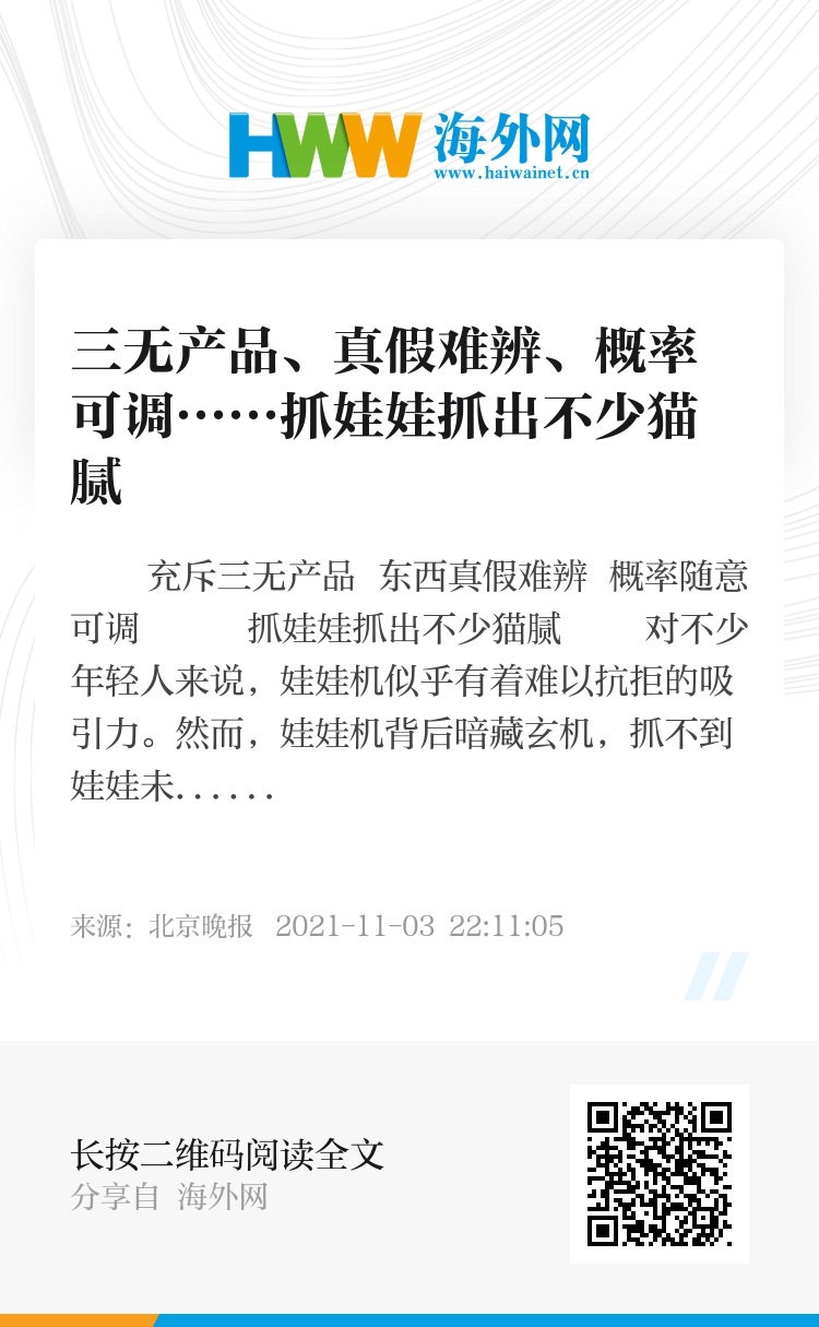 对不少年轻人来说,娃娃机似乎有着难以抗拒的吸引力。然而,娃娃机背后暗藏玄机,抓不到娃娃未必是技术不佳或运气不好;即使抓到,也可能只是质量堪忧的“三无产品”或仿冒品。