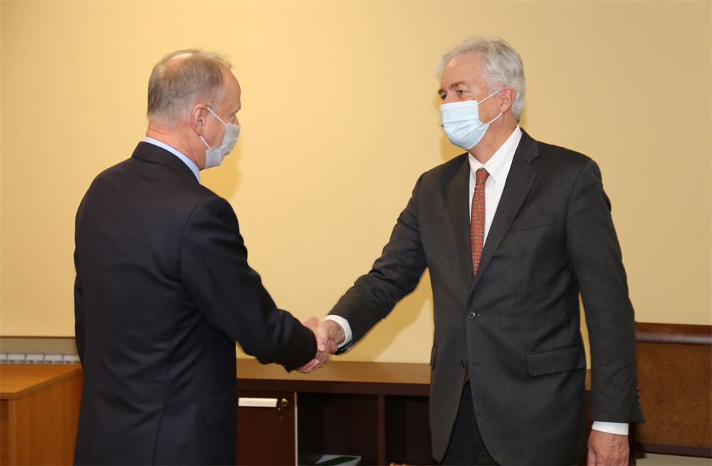 当地时间2021年11月2日,美国中情局局长罕见访俄讨论美俄关系问题,两国关系走向引发关注。俄罗斯外交部副部长里亚布科夫称,俄美关系的现状比冷战时期的危机还要危险。他还说,俄美战略稳定对话将在未来几周继续进行。俄罗斯驻美大使则建议美国与俄罗斯相互解除对外交存在的限制。图片来源:澎湃影像