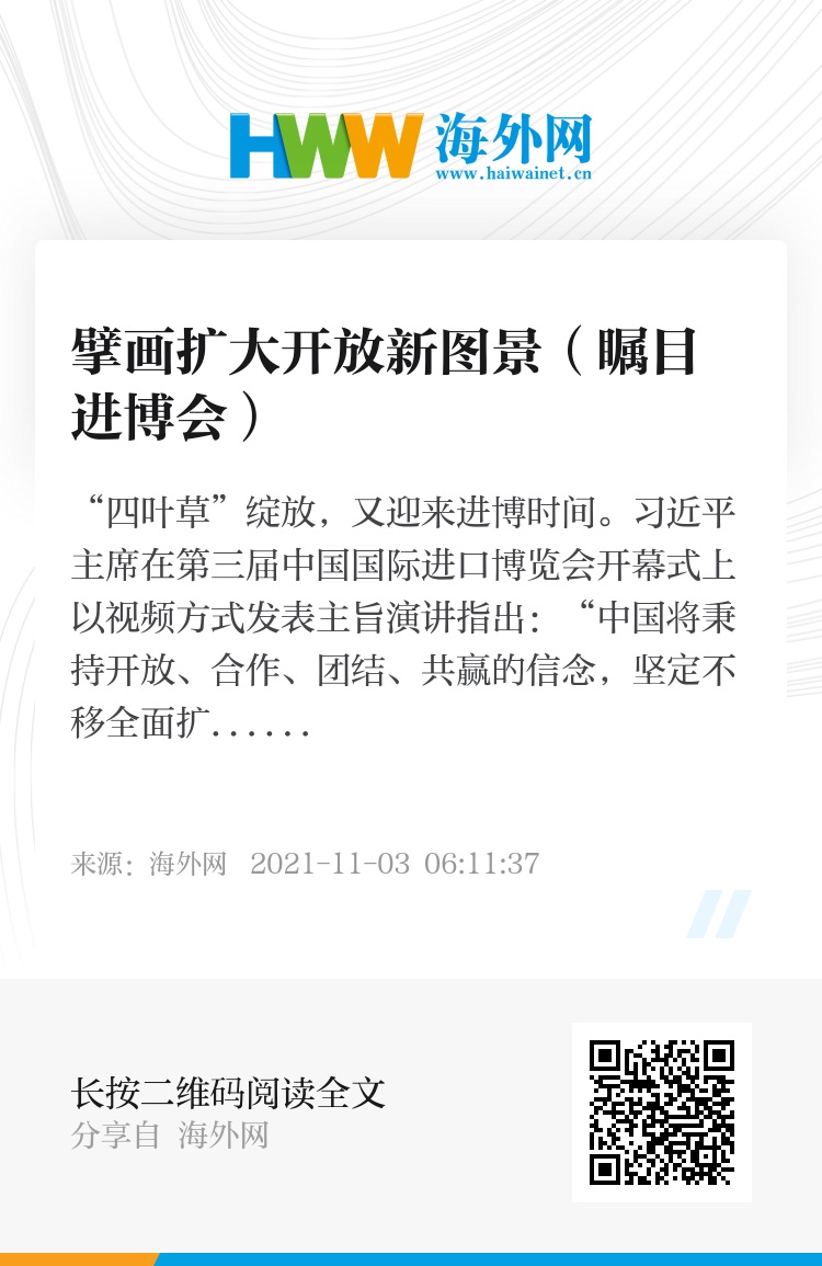 从首届进博会宣布进一步扩大开放的“五大举措”,到第二届进博会重申中国坚持以开放促改革、促发展、促创新,持续推进更高水平的对外开放,再到第三届进博会宣布中国全面扩大开放新举措,中国坚定不移全面扩大开放,不断以中国的新发展为世界提供新机遇。