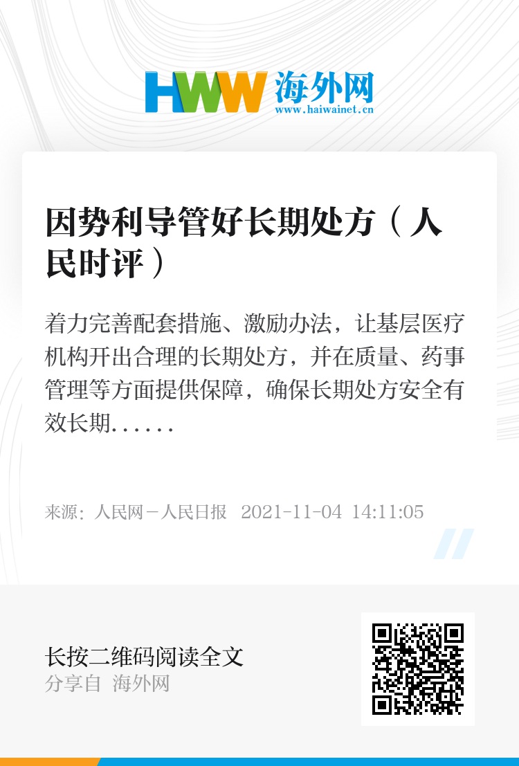 小处方关系着全民大健康。一张张安全有效的长期处方,保障着广大患者健康,守护着群众幸福生活。建立健全保障机制,因势利导管好长期处方,才能更好造福群众,助力健康中国建设。