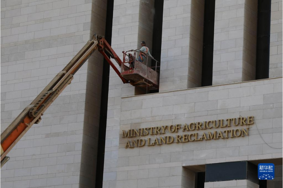 11月3日,工人在埃及新行政首都的农业与土地改造部新大楼外施工。当日,埃及总统府发表声明说,根据埃及总统塞西的指示,埃及政府将从12月起迁往新行政首都。新华社发(艾哈迈德·戈马摄)