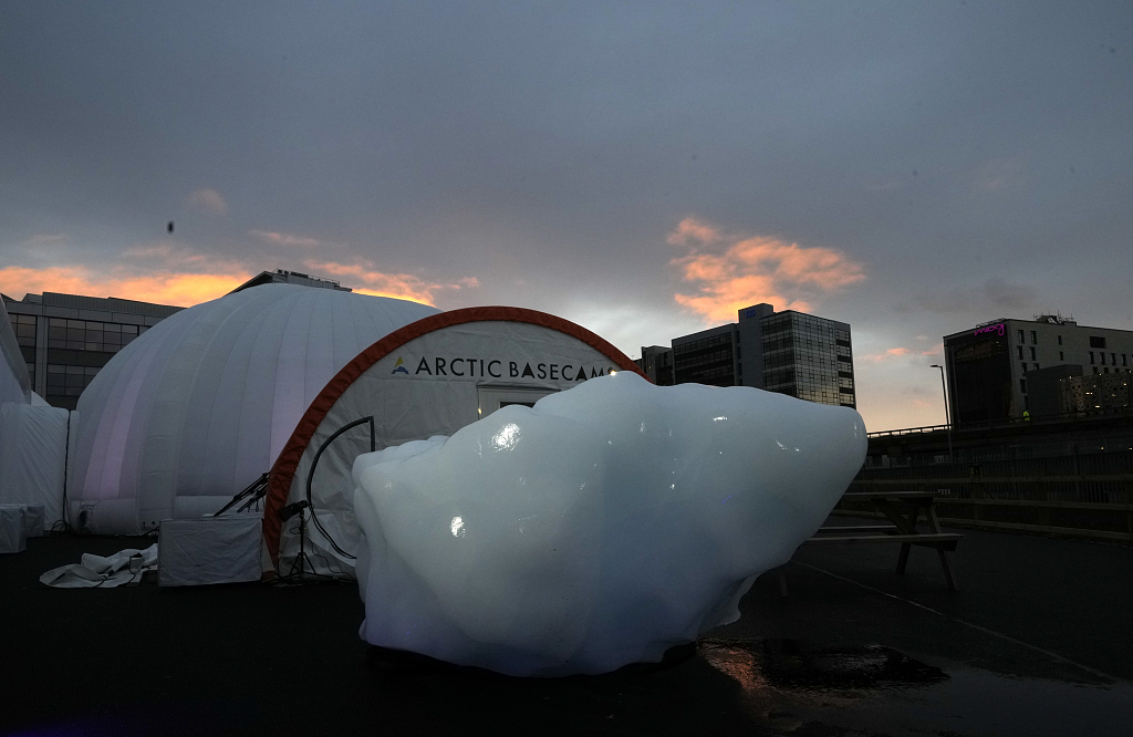 英国:4吨冰块被搬到COP26举办地 呼吁关注全球变暖