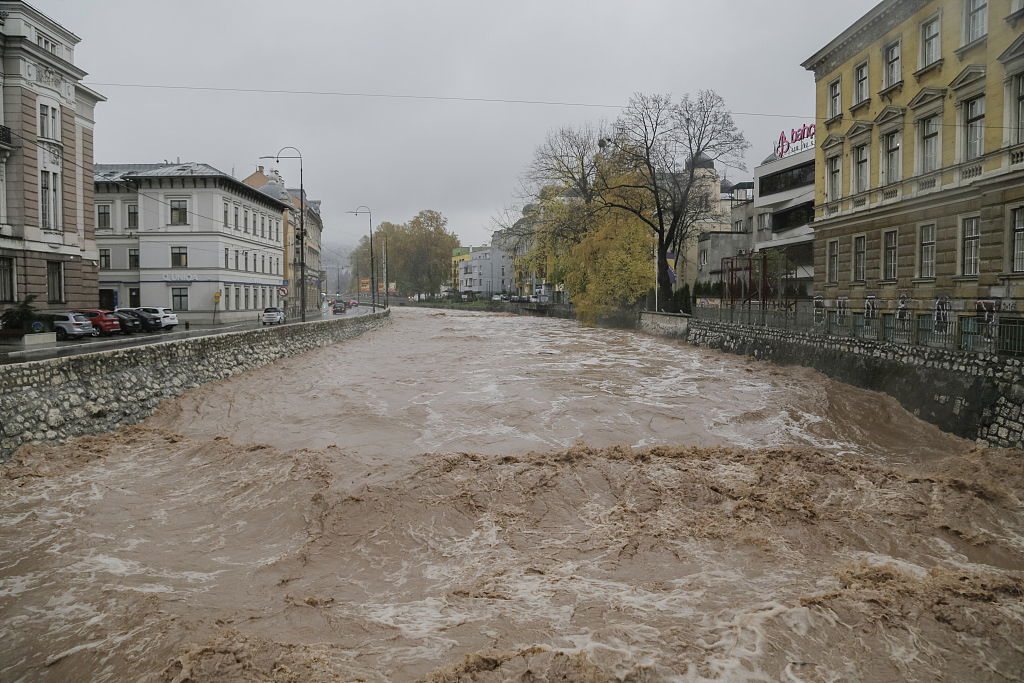​当地时间11月5日,波黑首都萨拉热窝遭遇暴雨引发山洪,城市被积水淹没,市民生活受到影响。图片来源:视觉中国