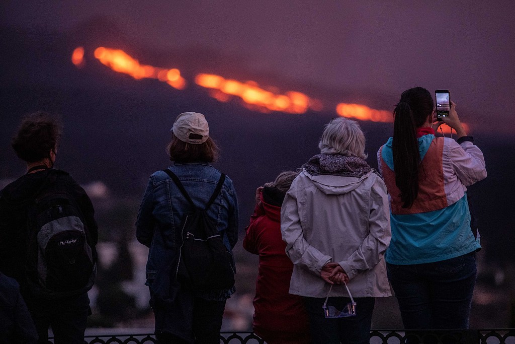 ​当地时间11月4日,西班牙拉帕尔马岛老昆布雷火山持续喷发,吸引不少人来拍照观看。图片来源:视觉中国