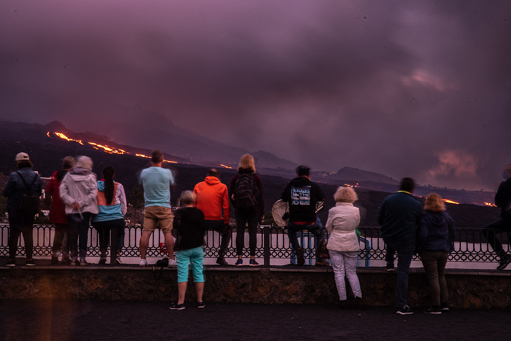 ​当地时间11月4日,西班牙拉帕尔马岛老昆布雷火山持续喷发,吸引不少人来拍照观看。图片来源:视觉中国