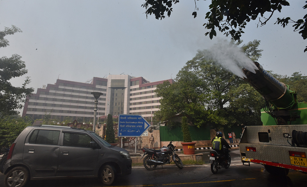 印度首都节后3天空气污染严重 民众沿街洒水