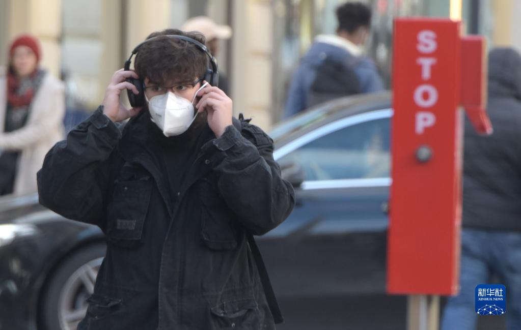 这是11月8日在奥地利维也纳街头拍摄的佩戴口罩的市民。近期,奥地利疫情出现反复,每日新增感染人数大幅上涨,自11月8日起,奥地利政府收紧防疫措施。新华社记者 郭晨 摄