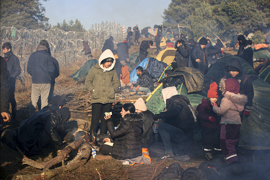 社交网络上的视频显示,波兰边防部队与边境铁丝网另一侧的难民形成对峙。一些难民试图用铁锹等工具毁坏铁丝网,作为回应,波兰军人用催泪瓦斯予以驱散。图片来源:人民视觉