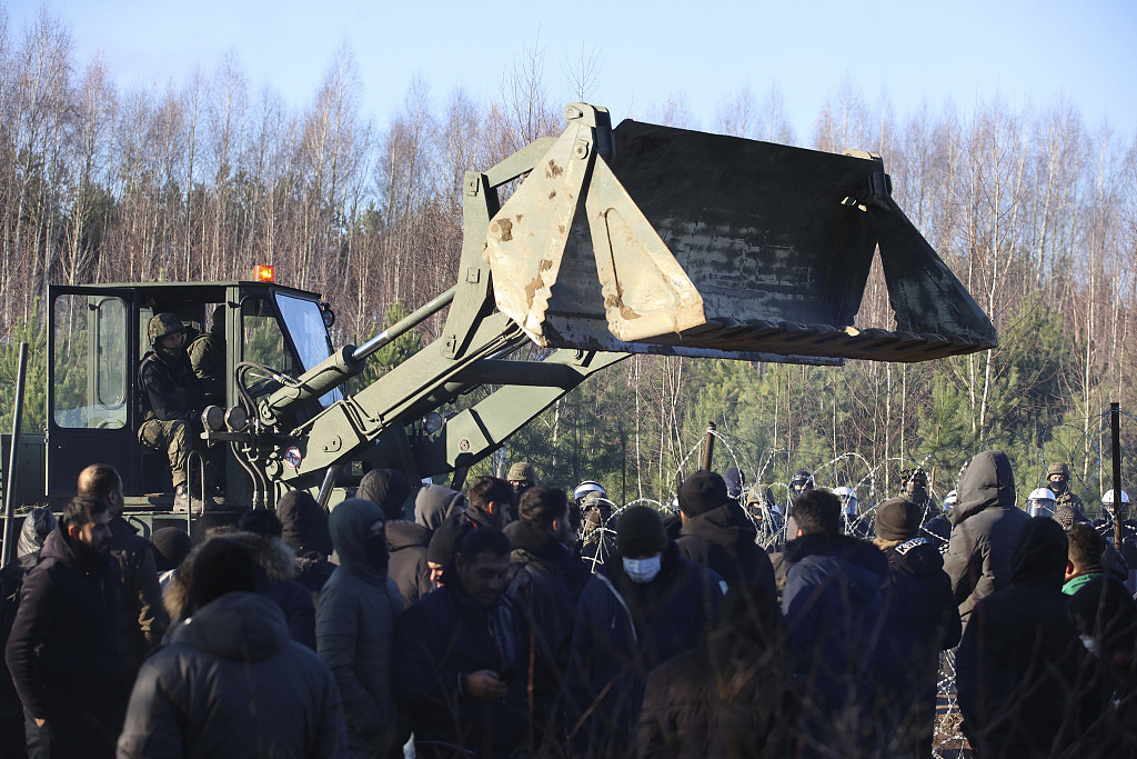 当地时间11月9日,白俄罗斯格罗诺地区,一股大规模非法移民潮正从白俄罗斯抵达波兰边境。图片来源:人民视觉