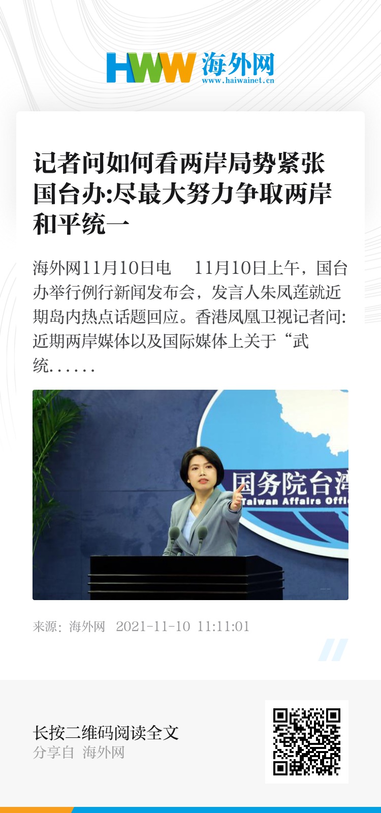 海外网11月10日电 11月10日上午,国台办举行例行新闻发布会,发言人朱凤莲就近期岛内热点话题回应。