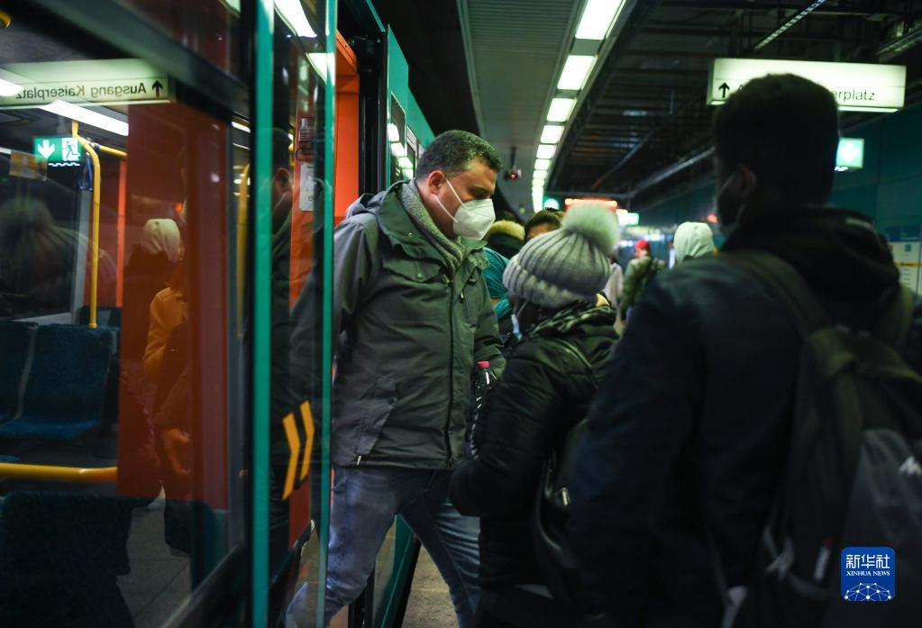 11月10日,人们在德国法兰克福一处地铁站乘车。德国疾控机构罗伯特·科赫研究所10日报告,德国单日新增新冠确诊病例39676例,创下德国暴发疫情以来的最高纪录。新华社记者 逯阳 摄