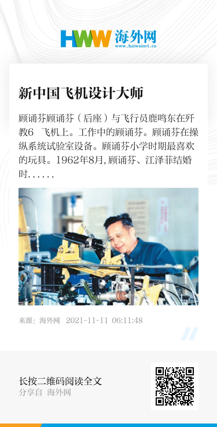 顾诵芬是享有盛誉的新中国飞机设计大师、新中国航空科技事业的奠基人之一、我国飞机空气动力设计奠基人、我国航空科技事业的引领者、我国航空界唯一的两院院士、航空工业第一位航空报国终身成就奖获得者。