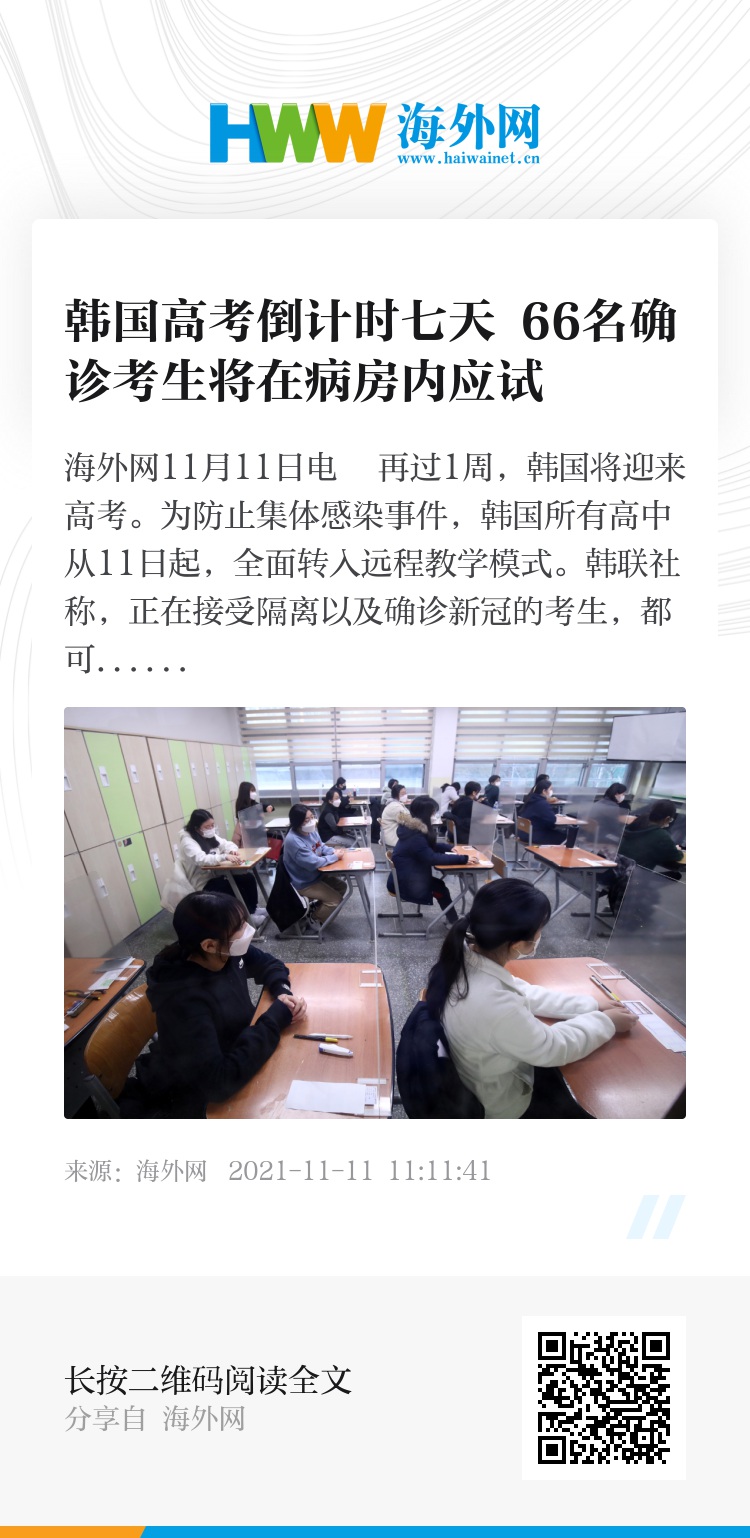 32271529,.韩国高考倒计时七天 66名确诊考生将在病房内应试,.2021-11-11 11:23:41,.204280,.刘强、李萌