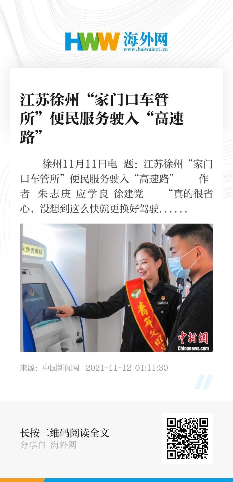 中新网徐州11月11日电 题:江苏徐州“家门口车管所”便民服务驶入“高速路”