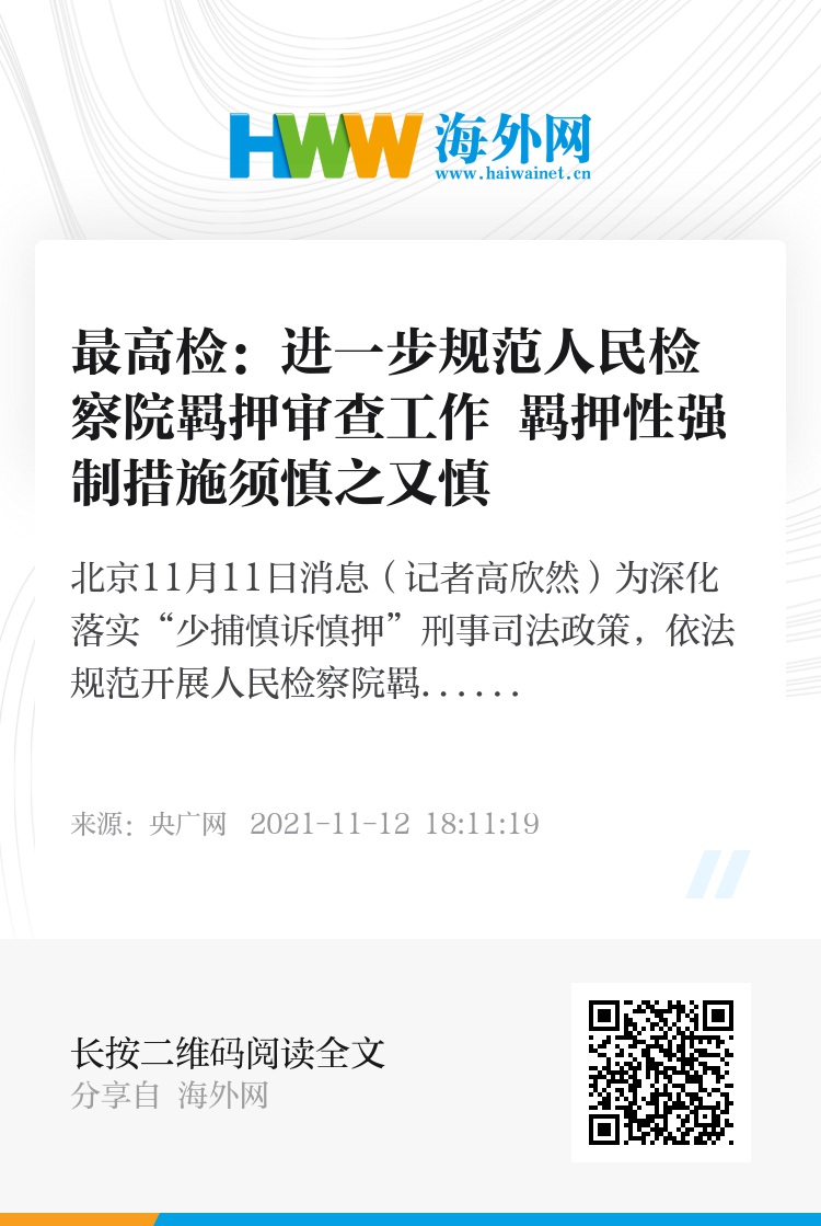央广网北京11月11日消息(记者高欣然)为深化落实“少捕慎诉慎押”刑事司法政策,依法规范开展人民检察院羁押审查工作,近日,最高人民检察院印发《人民检察院羁押听证办法》(以下简称《办法》)。