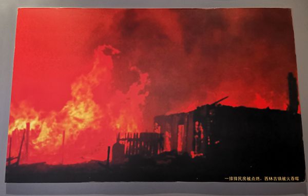 大火烧毁民房。拍摄自大兴安岭“五·六”火灾纪念馆。