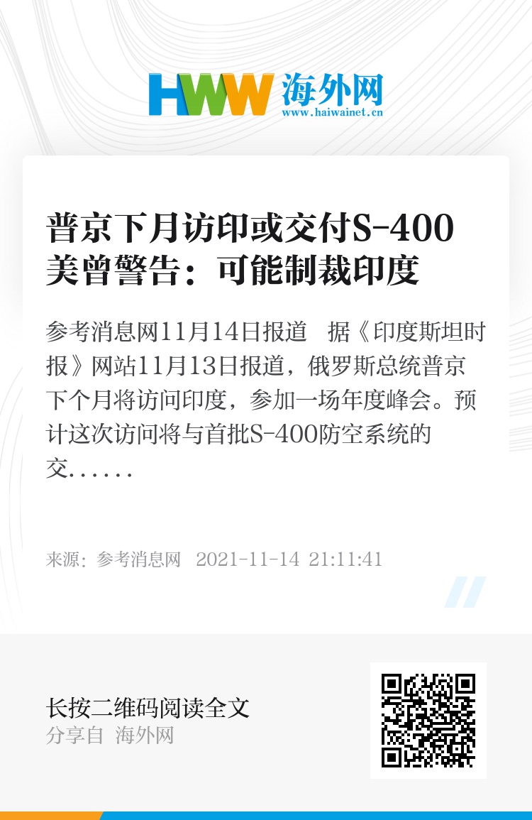 报道指出,印度已表示会致力于发展与俄罗斯的长期防务关系。尽管美国警告说,印度向俄罗斯购买S-400系统的协议可能招致制裁,但印度仍在推进这份价值54亿美元的合同。