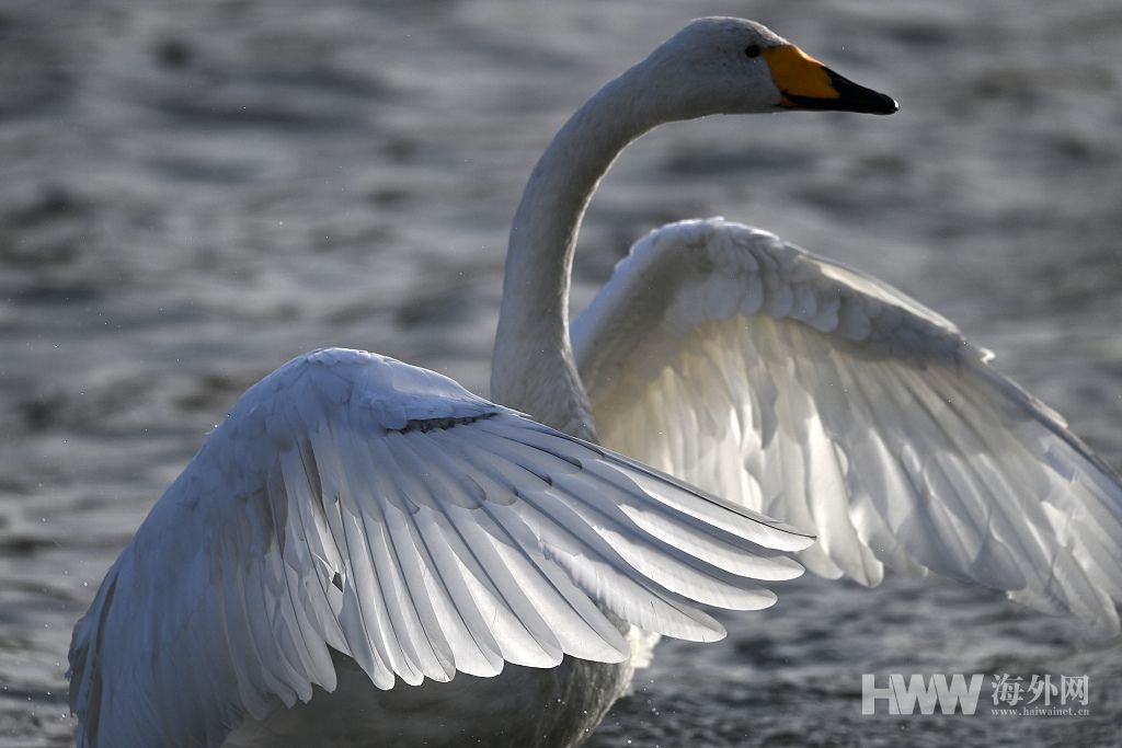 新疆巴州:天鹅飞来库尔勒市水域区越冬 追逐嬉水翩翩起舞