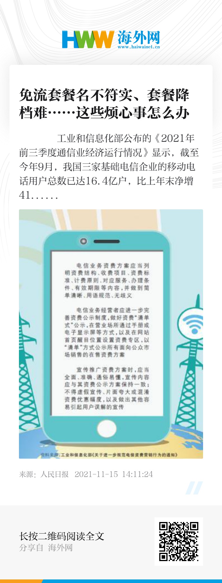 工业和信息化部公布的《2021年前三季度通信业经济运行情况》显示,截至今年9月,我国三家基础电信企业的移动电话用户总数已达16.4亿户,比上年末净增4185万户。随着移动通信业务的蓬勃发展,越来越多的事务实现了网上办、掌上办。不过,在享受便利的同时,一些消费者也遇到了买套餐被误导、换套餐费周折等烦心事。