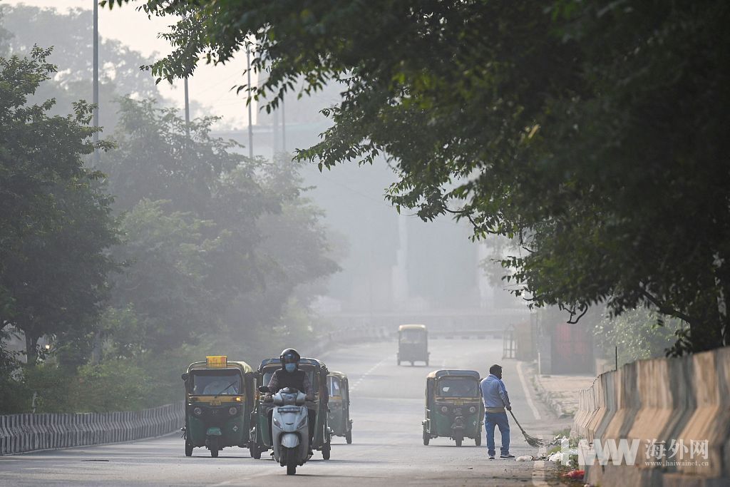 当地时间2021年11月15日,印度新德里,当地持续遭遇严重雾霾天气。(图:视觉中国)