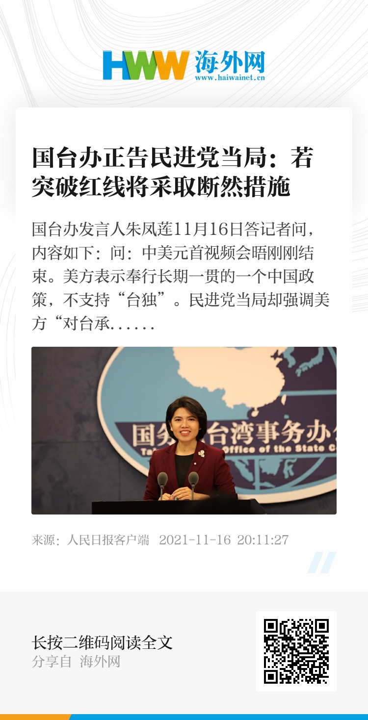 国台办发言人朱凤莲11月16日答记者问,内容如下: