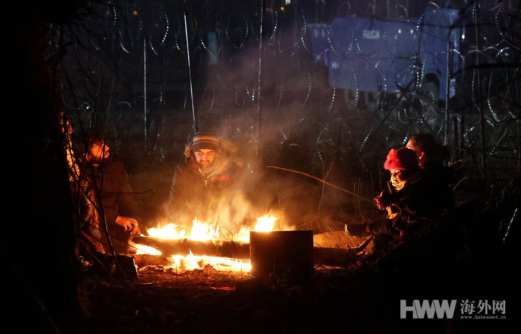 波白边境危机升级 难民在格罗德诺地区生火取暖