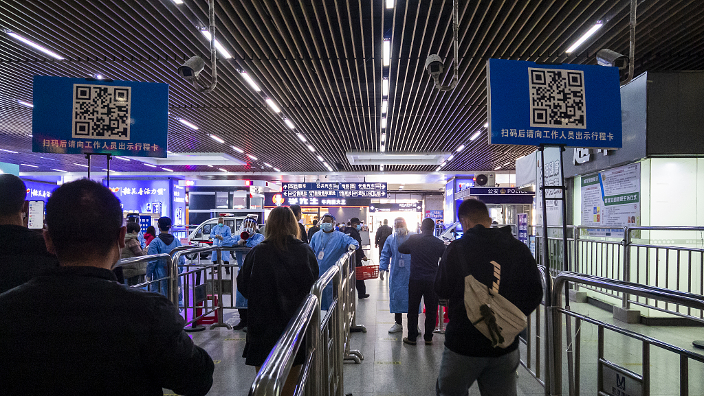 ​2021年11月16日,武汉,武昌火车站严格把控疫情防控关,武昌火车站对出入火车站乘客要求出示行程码和健康码。图片来源:人民视觉