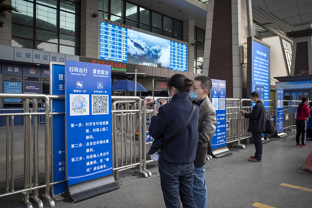​2021年11月16日,武汉,武昌火车站严格把控疫情防控关,武昌火车站对出入火车站乘客要求出示行程码和健康码。图片来源:人民视觉