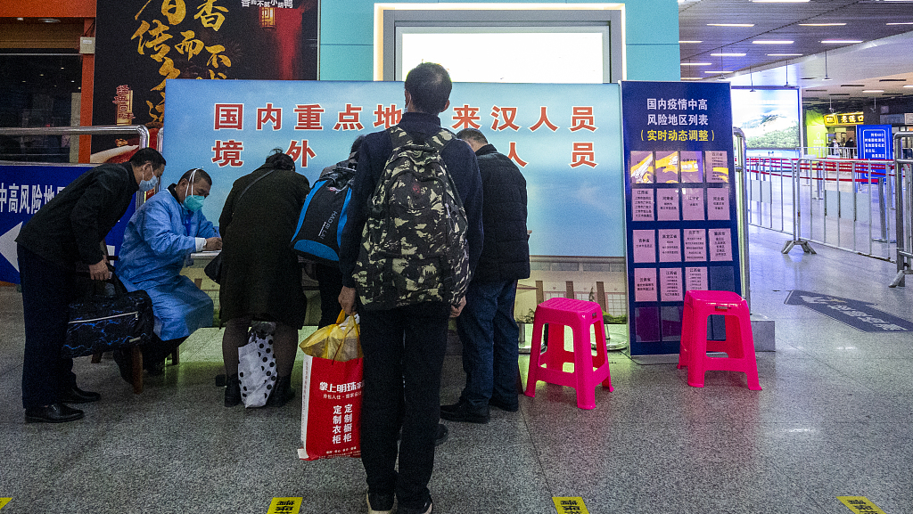 ​2021年11月16日,武汉,武昌火车站严格把控疫情防控关,武昌火车站对出入火车站乘客要求出示行程码和健康码。图片来源:人民视觉