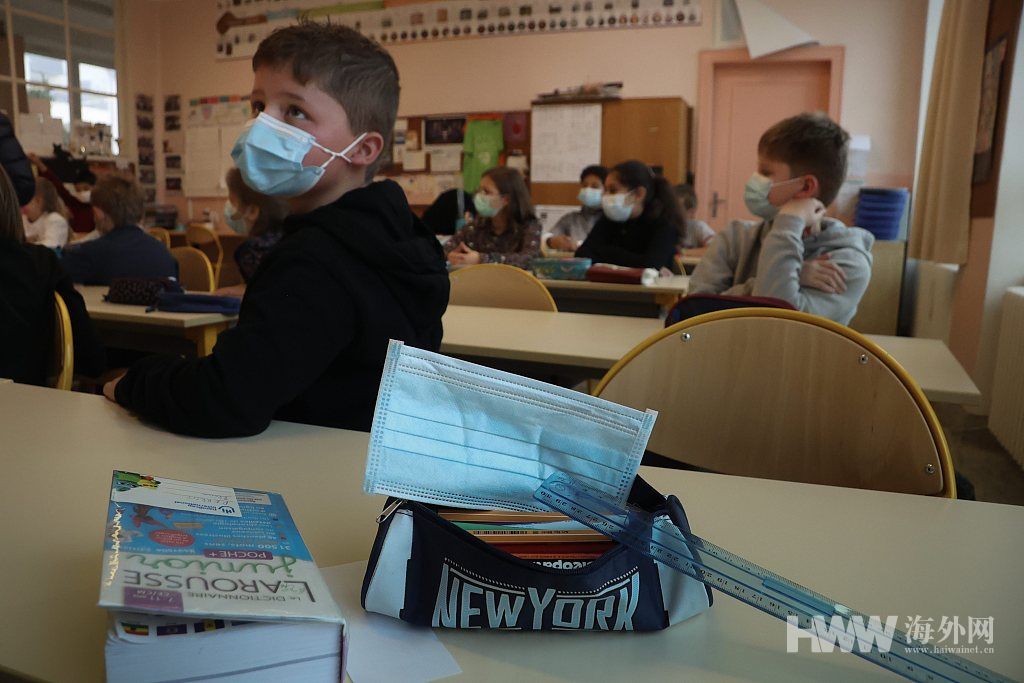 当地时间2021年11月8日,法国小学生在课堂上佩戴口罩。(图:视觉中国)