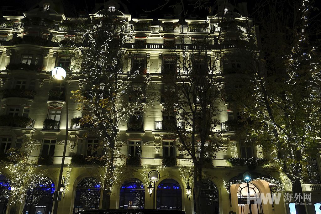 当地时间2021年11月17日,法国巴黎,当地即将迎来圣诞假日,街道上被装饰灯光点缀。(图:视觉中国)