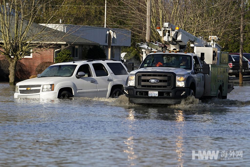 美华盛顿州遭严重洪灾:城市水流奔涌 近5万户居民断电