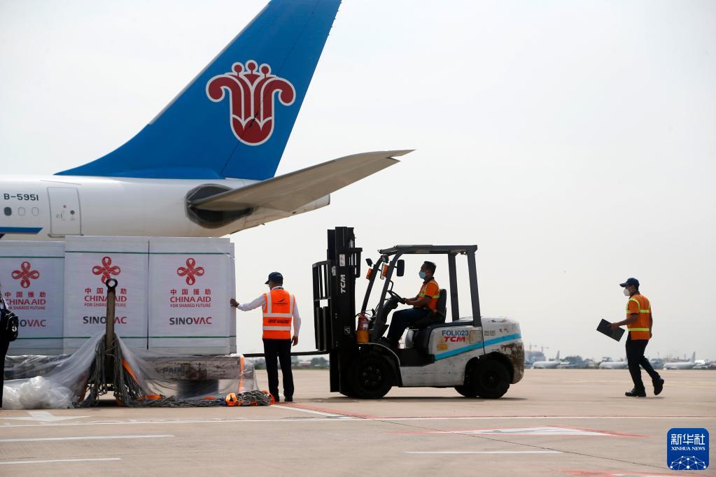 11月17日,工作人员在柬埔寨金边国际机场运输中国援柬第七批新冠疫苗。新华社发(批隆摄)