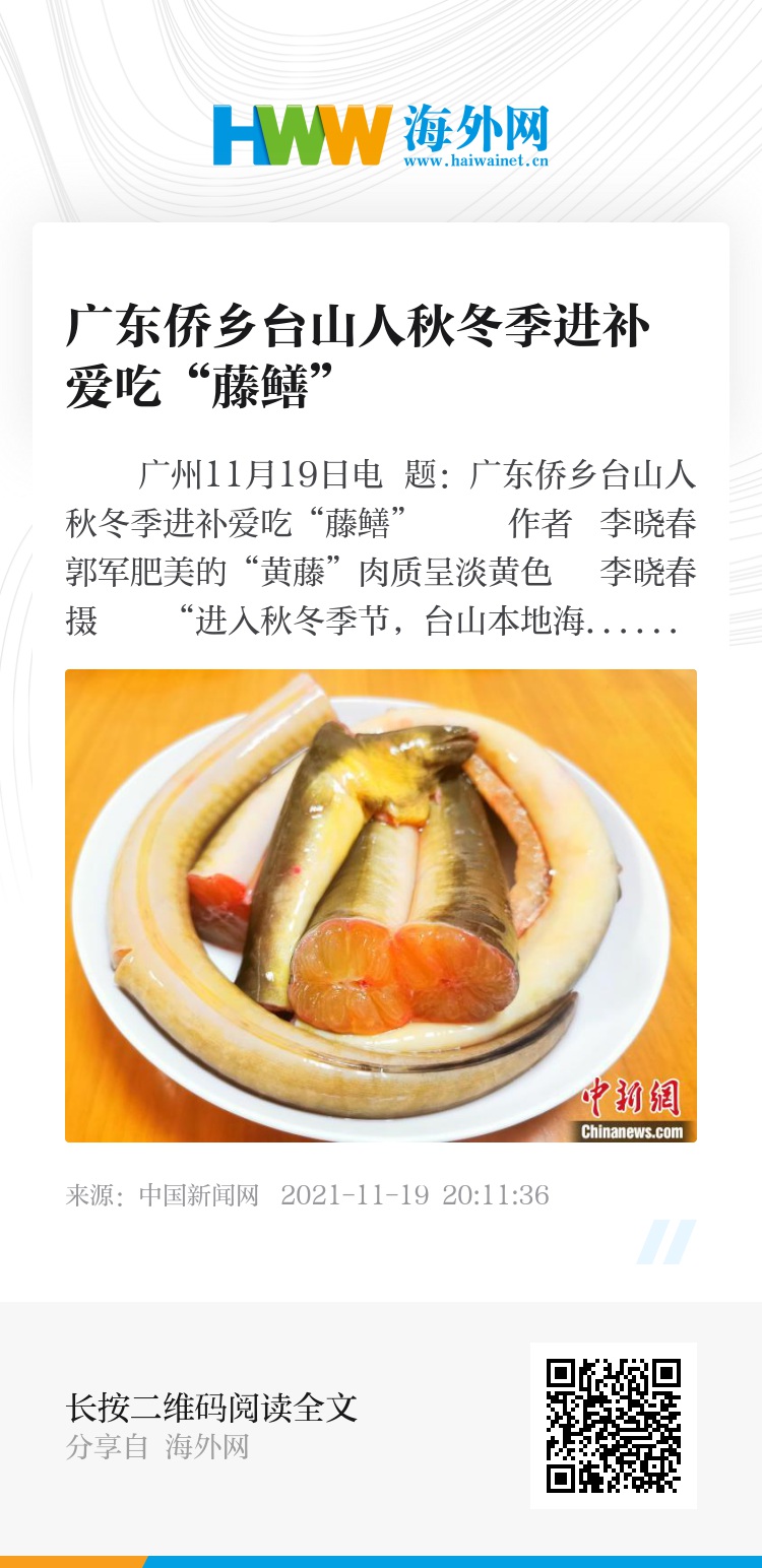 中新网广州11月19日电 题:广东侨乡台山人秋冬季进补爱吃“藤鳝”