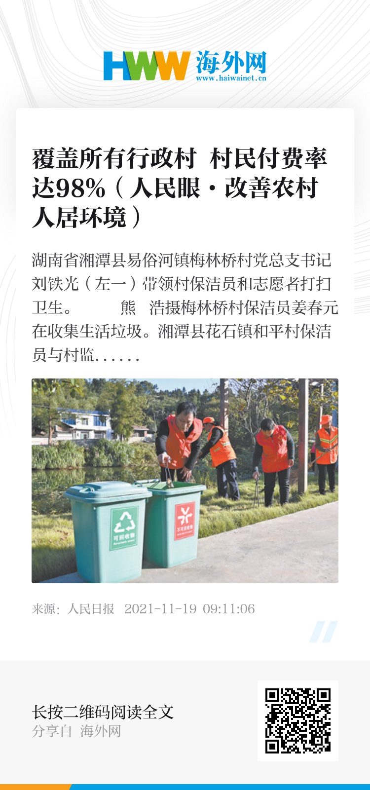 迄今,付费制已在湘潭县所有行政村全面推行,村民付费率达到98%,实现“工作顺利运行、群众支持拥护、环境治理有效”的目标。今年8月,国家发展改革委办公厅印发通知,推广第三批国家新型城镇化综合试点等地区经验,“湖南湘潭推进乡村生活垃圾处理付费制度全覆盖”被列入其中。