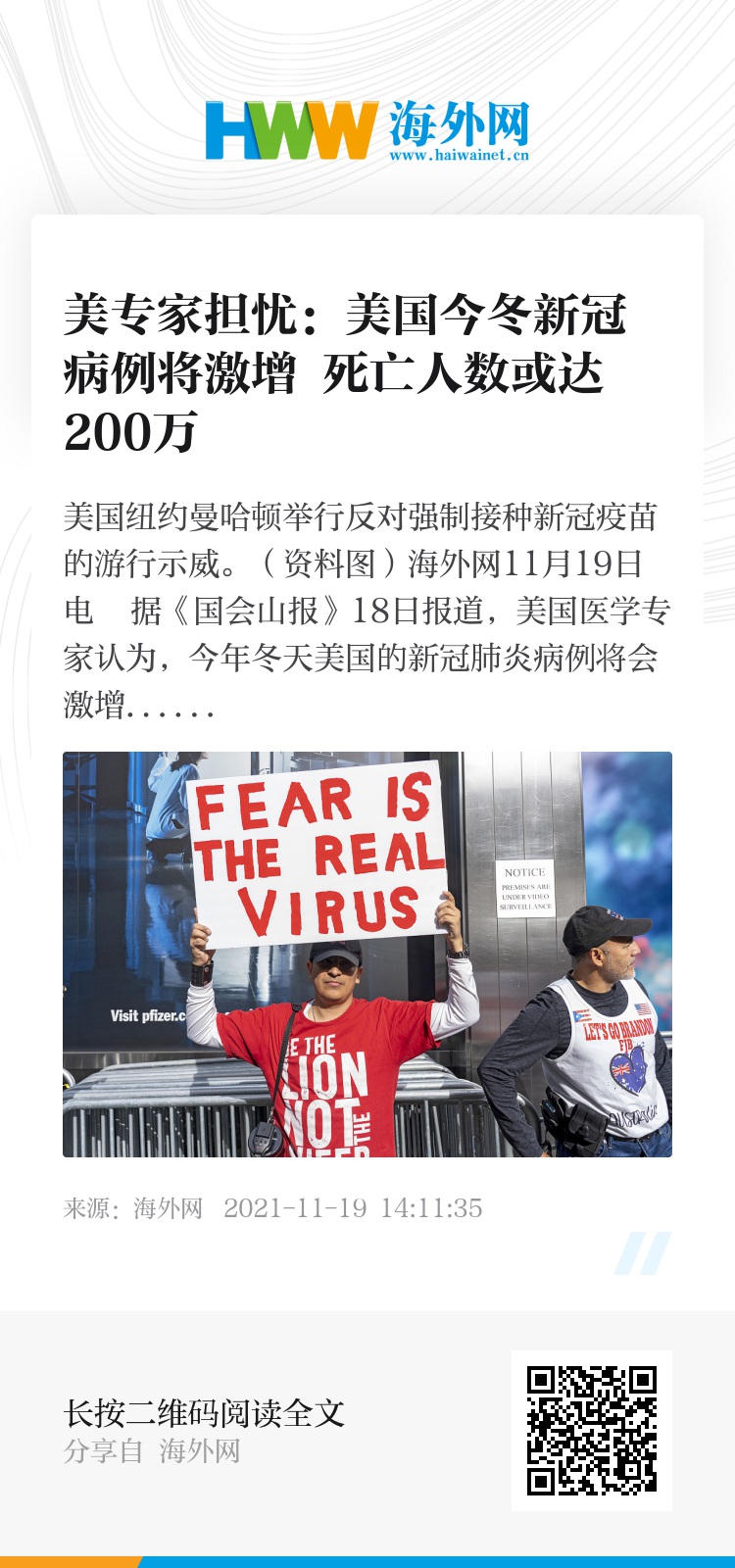海外网11月19日电 据《国会山报》18日报道,美国医学专家认为,今年冬天美国的新冠肺炎病例将会激增,目前已经开始出现苗头。